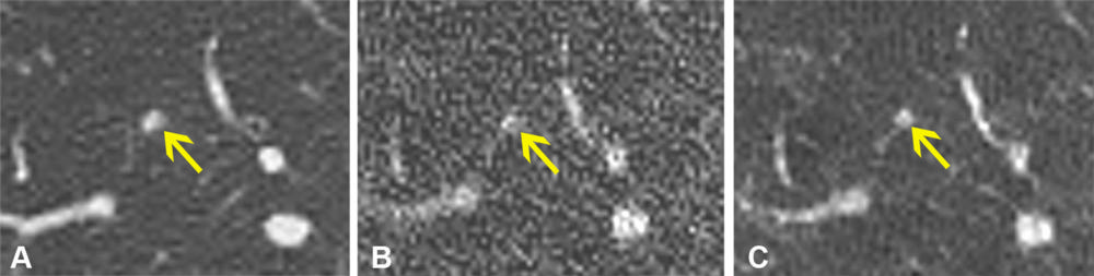 Radiologists individually assessed and documented their findings from the normal dose CT, ultra-low dose CT and denoised ultra-low dose CT scans. They were blinded to all patient clinical information.