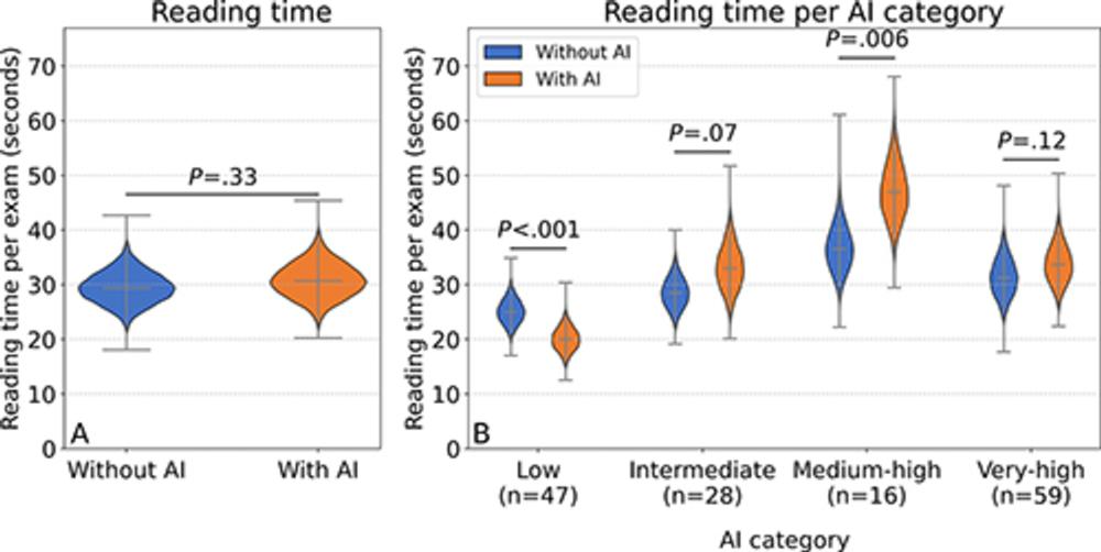 "Radiologists seemed to adjust their reading behavior based on the AI's level of suspicion: when the AI gave a low score, it likely reassured radiologists, helping them move more quickly through clearly normal cases," Gommers said. "Conversely, high AI scores prompted radiologists to take a second, more careful look, particularly in more challenging or subtle cases."