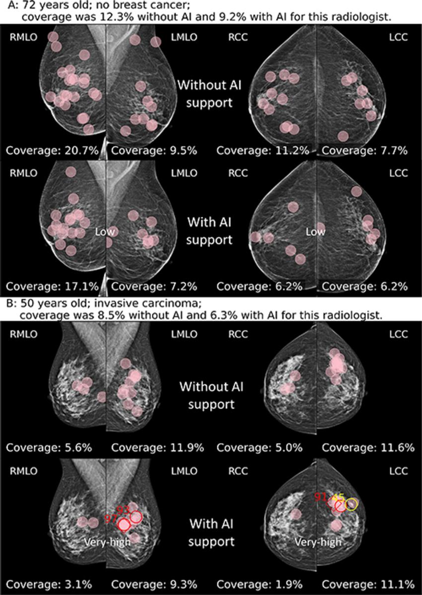 "By analyzing this data, we can determine which parts of the mammograms the radiologist focus on, and for how long, providing valuable insights into their reading patterns," said the study's joint first author Jessie J. J. Gommers, M.Sc., from the Department of Medical Imaging, Radboud University Medical Center in Nijmegen, Netherlands.