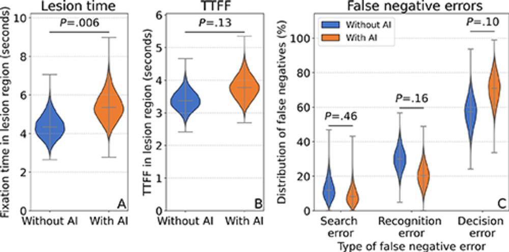 Eye tracking data showed that radiologists spent more time examining regions that contained actual lesions when AI support was available.
